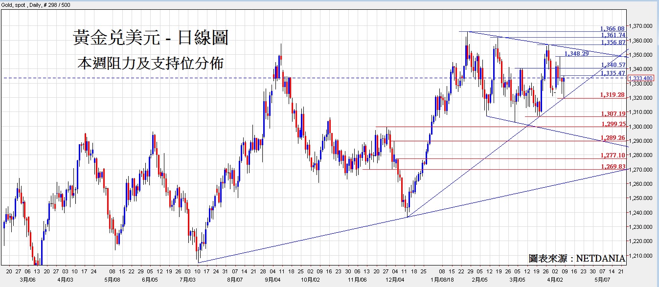 貿易戰消息料將不斷發出,當中以惡化居多,金價預料持續反覆,建議不論長倉或短倉應以短線為主,並嚴守止蝕。